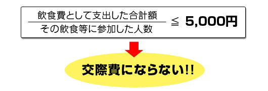 A2.交際費等の範囲から除かれる飲食費は、次の算式で計算した一人当たりの金額が五千円以下の費用が対象となります。